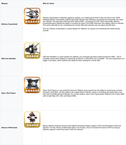 A recommended approach is to use the Eternal Xiranite set, which boosts the attack percentage of her entire team whenever Gilberta inflicts arts susceptibility on enemies.