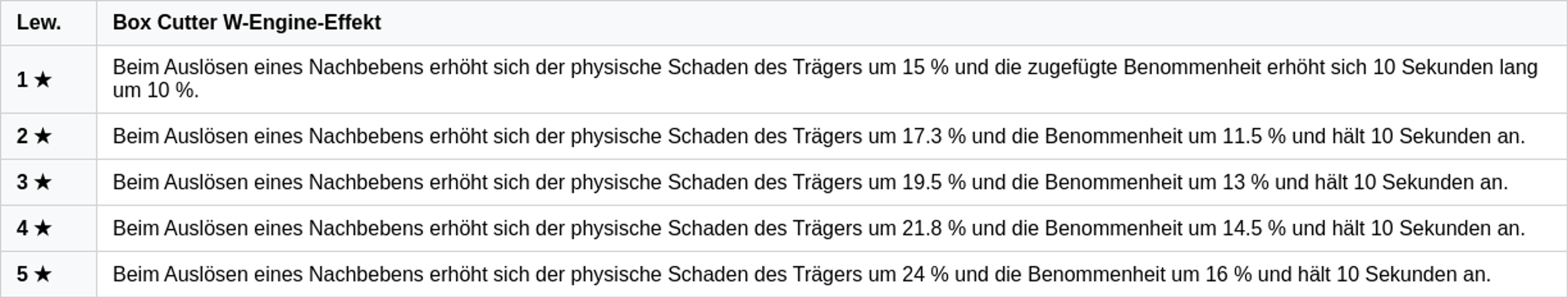 Dieses Nachbeben steigert für 10 Sekunden den physischen Schaden und erhöht gleichzeitig die Betäubungswirkung.