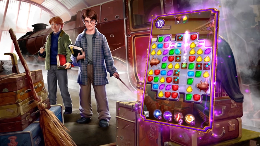 Solve enchanting puzzles to collect chocolate frogs, magic keys, and powerful potions along your path